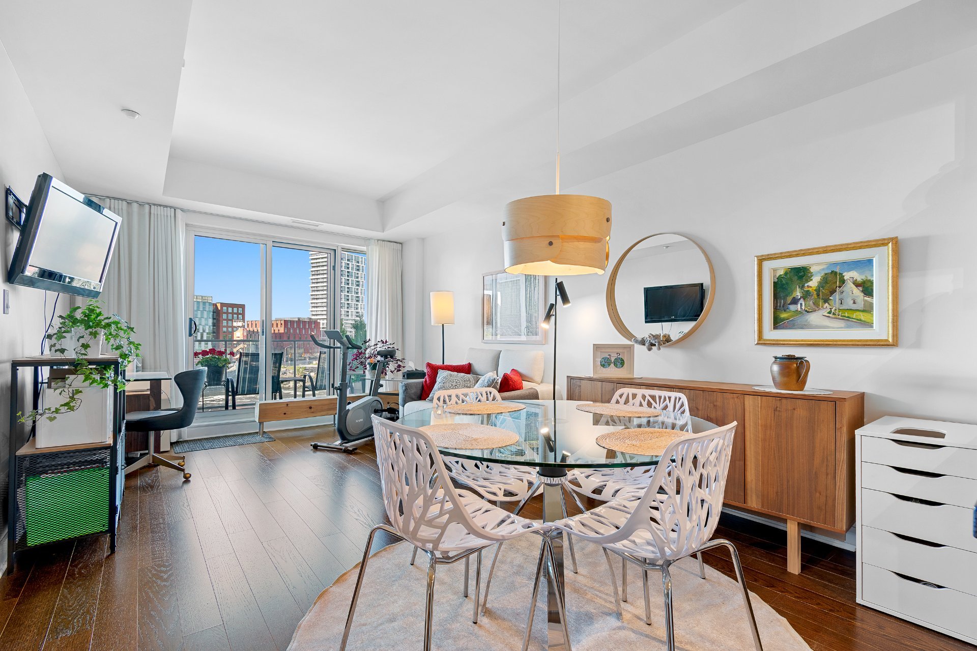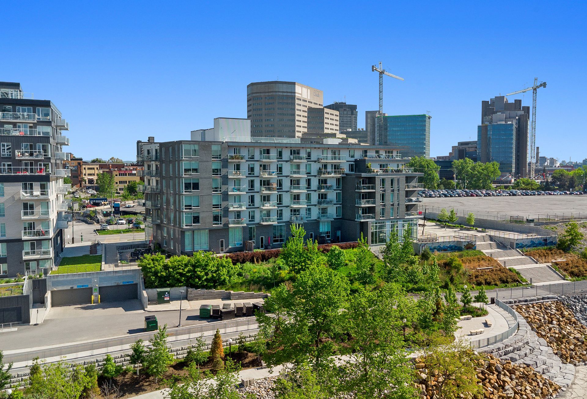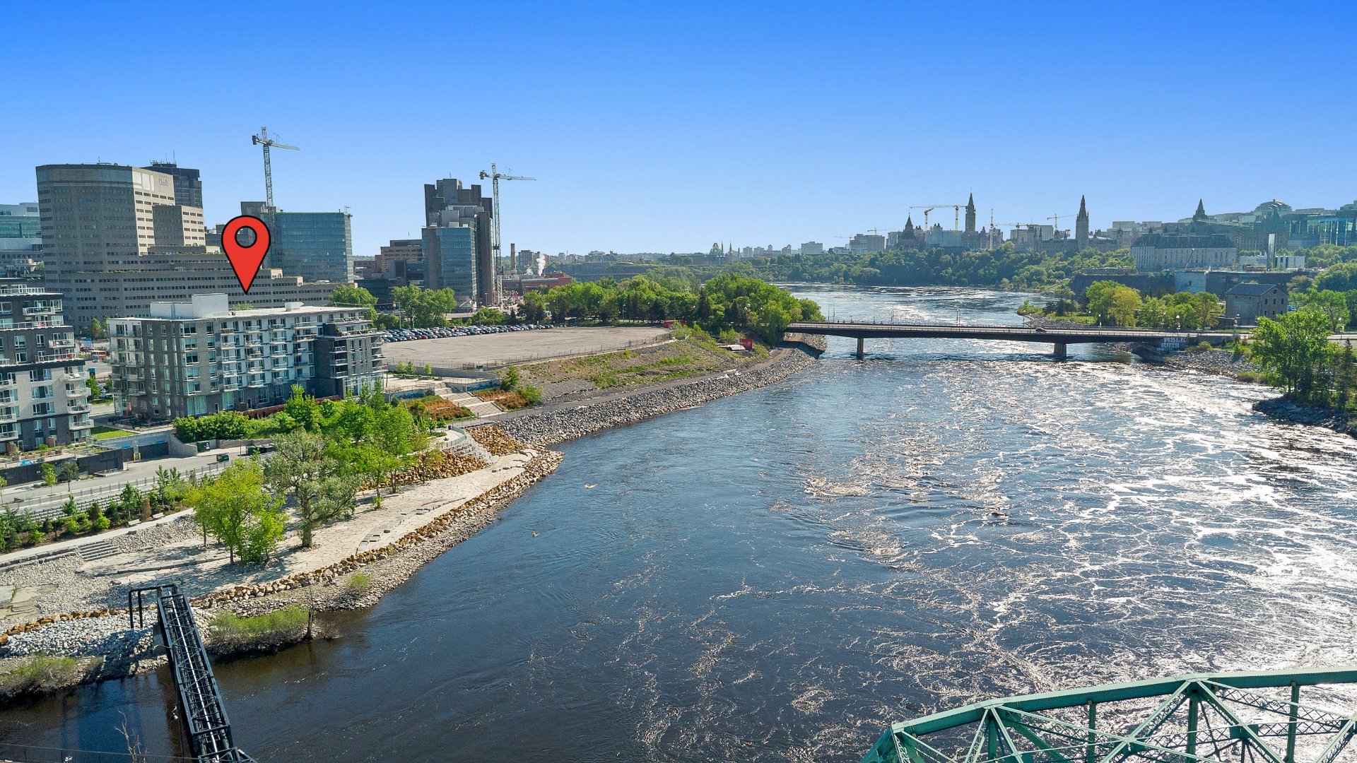 Zibi Project -- A Sustainable Lifestyle in the Heart of the City Location & Community: Welcome to Zibi, a one-of-a-kind development focused on sustainability and community living. Ideally located between Gatineau and Ottawa, this vibrant neighbourhood offers direct access to both downtown cores. Central location near shops, restaurants, and services Lebreton Flats, Blues Fest, Canada Day, the Museum, Casino Fireworks from the private rooftop terrace with 360° panoramic views. Bike paths right outside your door. Sustainability & Design Guided by the One Planet Living principles, Zibi places a strong emphasis on sustainability, health, equity, culture, and carbon neutrality. LEED-certified construction using sustainable materials and building practices Geothermal energy for optimal energy efficiency Heating costs are based on individual thermal energy consumption, with the majority included in condo fees Condo Features: This unit combines comfort, style, and eco-conscious living in a remarkable setting. Large windows providing natural light and breathtaking views. Modern kitchen with quartz countertops. Luxurious bathroom with quartz finishes. Hardwood and ceramic flooring throughout. 1 indoor parking space P1#33 with electric vehicle private charging station. 2 storage lockers included, #L1.21 & #L1.27.