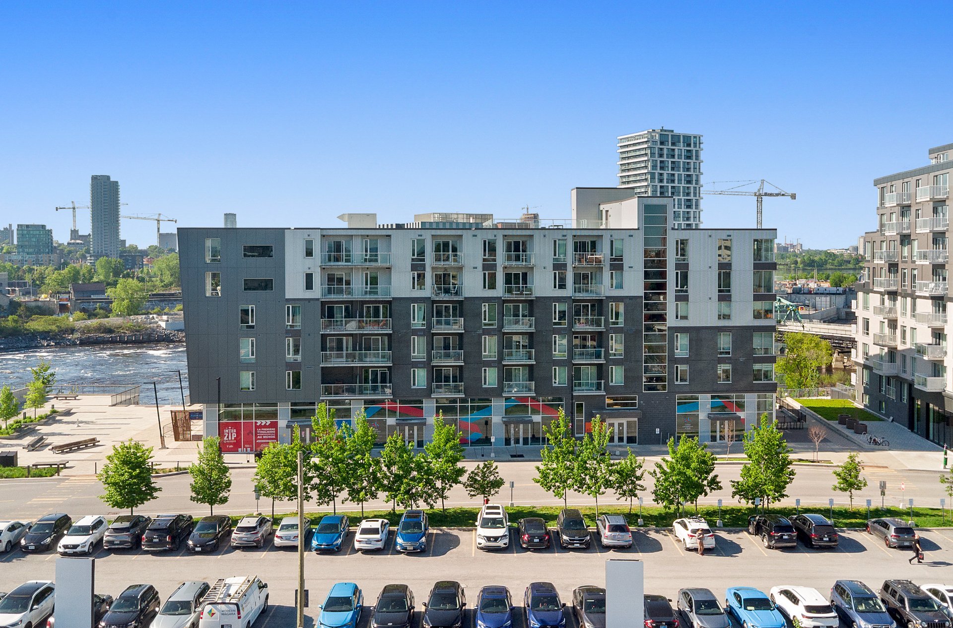 Stunning Condo Unit in the ZIBI Project Experience urban luxury in this one-bedroom condo located on the 4th floor, offering a beautiful view of the Ottawa River. Included with this unit: One indoor parking space P1#33 with an electric vehicle private charging station. 1 indoor storage lockers. Shared fitness room on the ground floor Spacious rooftop terrace, offering a hotel-style living experience in the heart of downtown Enjoy a healthy lifestyle in a safe and modern environment. This turnkey condo has everything you're looking for -- your search ends here!