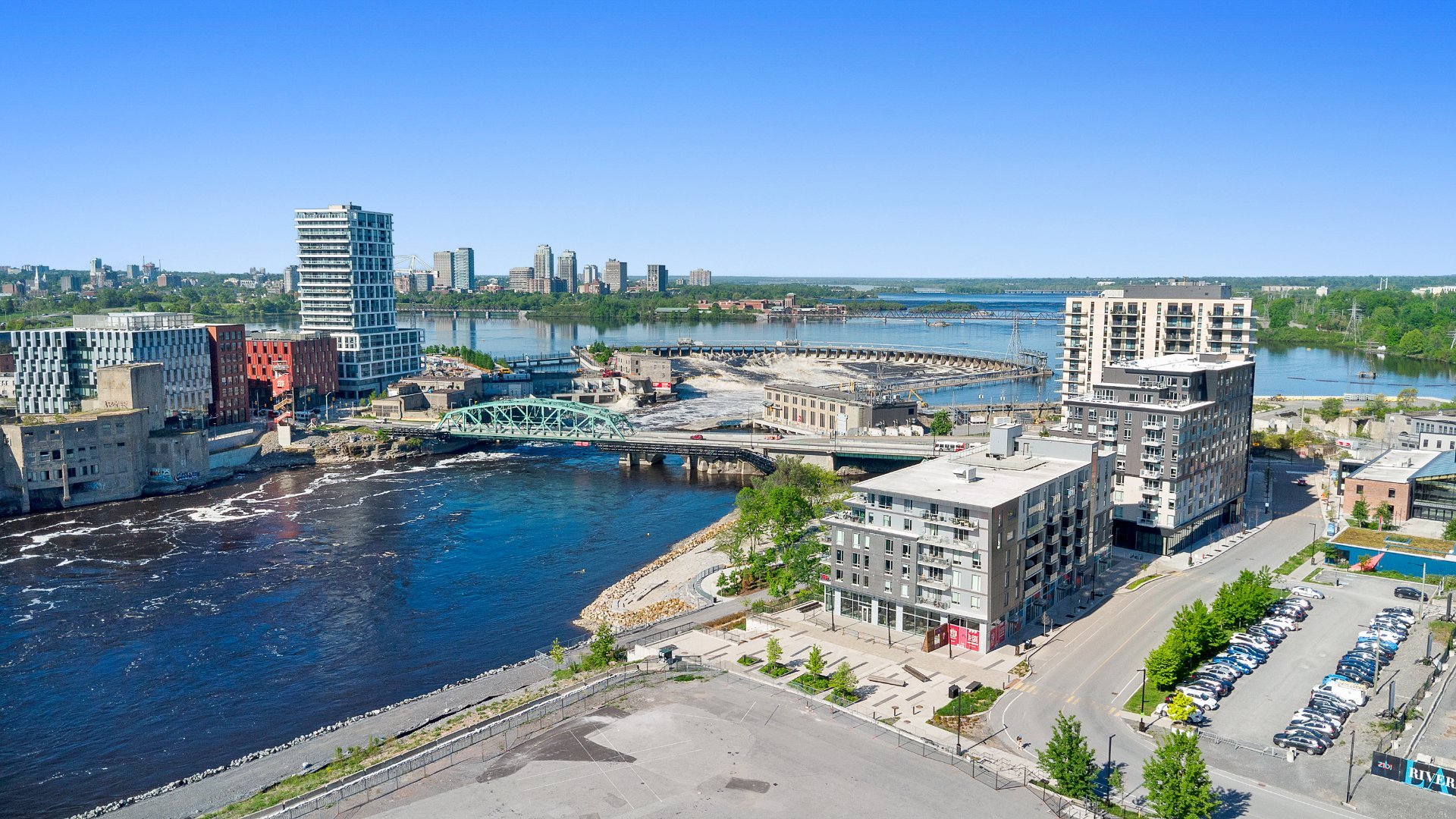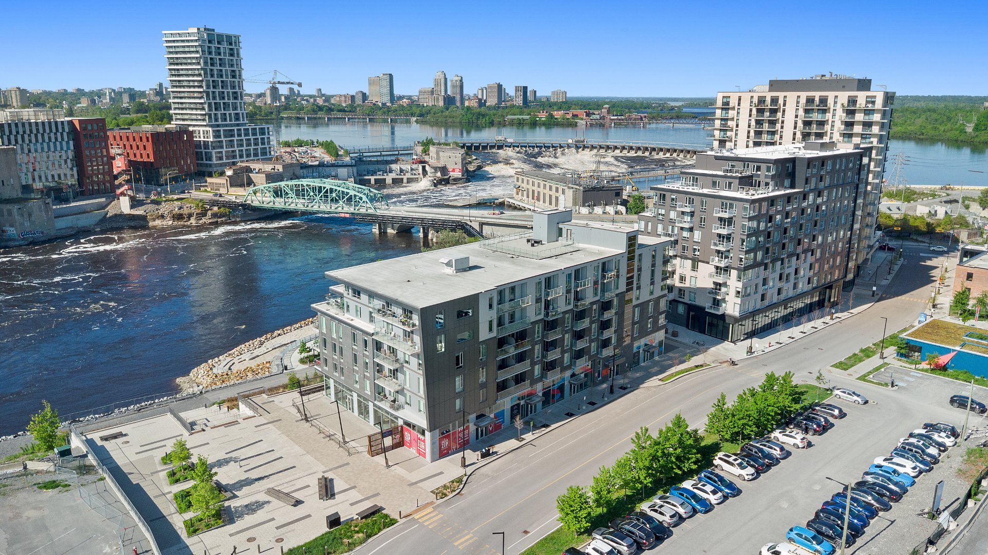 Zibi Project -- A Sustainable Lifestyle in the Heart of the City Location & Community: Welcome to Zibi, a one-of-a-kind development focused on sustainability and community living. Ideally located between Gatineau and Ottawa, this vibrant neighbourhood offers direct access to both downtown cores. Central location near shops, restaurants, and services Lebreton Flats, Blues Fest, Canada Day, the Museum, Casino Fireworks from the private rooftop terrace with 360° panoramic views. Bike paths right outside your door. Sustainability & Design Guided by the One Planet Living principles, Zibi places a strong emphasis on sustainability, health, equity, culture, and carbon neutrality. LEED-certified construction using sustainable materials and building practices Geothermal energy for optimal energy efficiency Heating costs are based on individual thermal energy consumption, with the majority included in condo fees Condo Features: This unit combines comfort, style, and eco-conscious living in a remarkable setting. Large windows providing natural light and breathtaking views. Modern kitchen with quartz countertops. Luxurious bathroom with quartz finishes. Hardwood and ceramic flooring throughout. 1 indoor parking space P1#33 with electric vehicle private charging station. 1 storage lockers included.