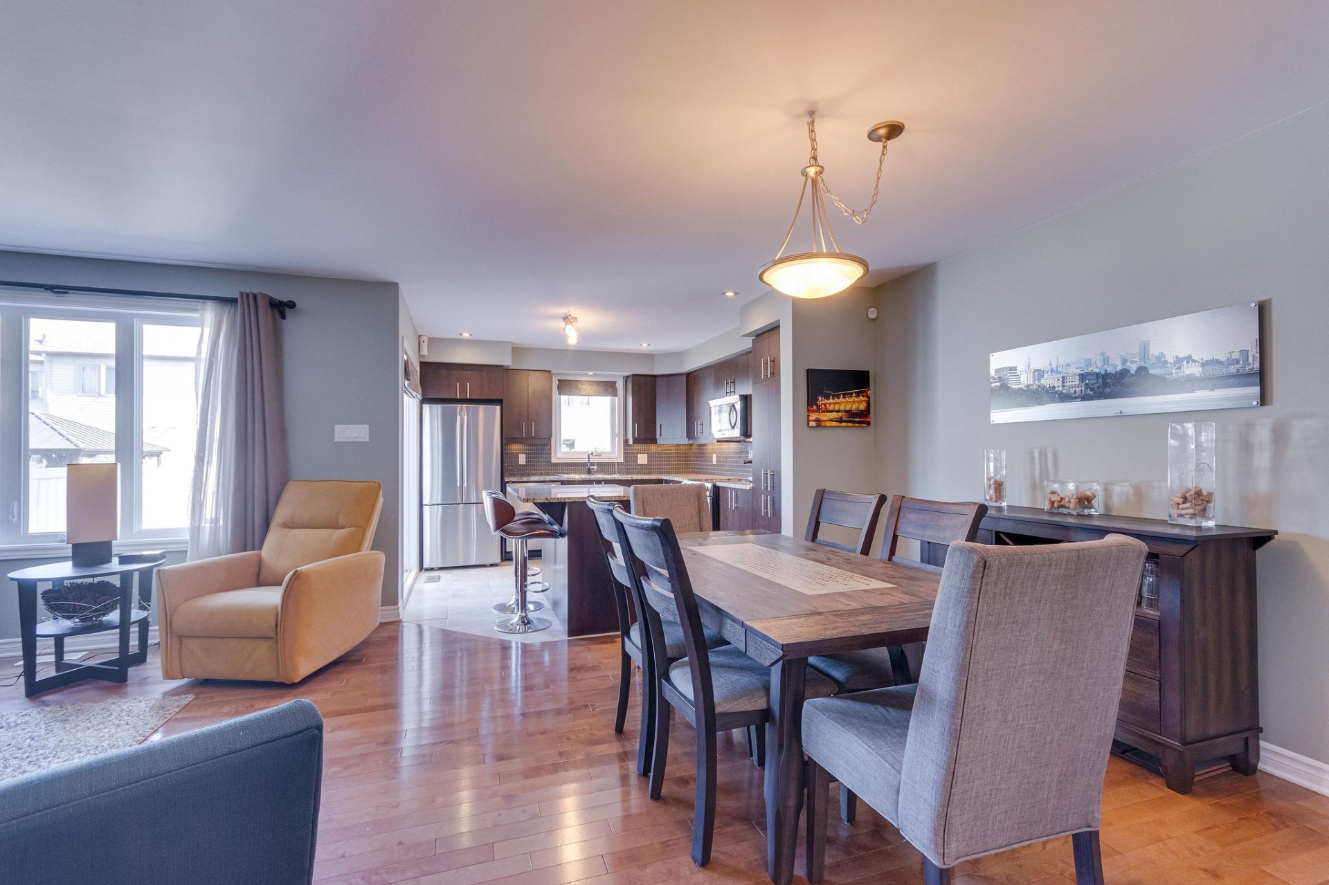 Beautiful town house with integrated garage located in the Plateau de la Capitale in Aylmer. Three bedrooms, one bathroom with an independant shower and open common spaces. This property also offers you the possibility to add an extra bedroom and another living room in the basement. The small, cozy and totally fenced backyard will allow you to enjoy the beautiful seasons. Contact us or your broker for a visit.