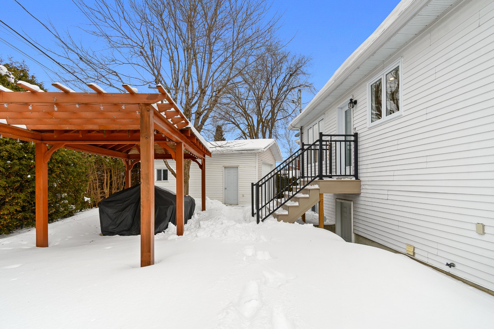 Liste des améliorations effectuées par le vendeur 2025 -- Remplacement de toutes les fenêtres et de la porte d'entrée (35 316,14 $) 2025 -- Remplacement de la majorité des stores (3 274,70 $ + installation) 2024 -- Installation d'une thermopompe murale dans la chambre principale (5 461,31 $) 2024 -- Remplacement du chauffe-eau (60 gallons) 2024 -- Installation de nouvelles gouttières (1 828,10 $) 2024 -- Réaménagement complet de la cour arrière (32 936,18 $) 2022 -- Installation d'une clôture de qualité sans entretien, à l'intérieur du terrain (côté sud) (environ 10 000 $) 2019 -- Réaménagement complet du sous-sol (environ 30 000 $) 2018 -- Réaménagement de l'entrée avec escalier en bois franc et nouvelle rampe (environ 10 000 $) 2017 -- Remplacement du recouvrement de toiture de la maison 2017 -- Ré-asphaltage complet de l'entrée (environ 6 000 $) 2017 -- Installation d'un système d'arrosage automatique à l'avant (environ 2 000 $) 2017 -- Nouvelle pelouse et plantation d'un arbre à l'avant 2015 -- Remplacement du recouvrement de toiture du garage 2015 -- Construction d'un gazebo avec électricité (7 819,45 $) 2015 -- Rénovation complète de la cuisine (environ 30 000 $) 2015 -- Installation d'un climatiseur mural au salon (environ 3 000 $) 2013 -- Aménagement du walk-in et remplacement du plancher flottant des deux chambres du rez-de-chaussée (environ 10 000 $) 2012 -- Rénovation de la salle de bain du rez-de-chaussée et de la salle d'eau (environ 12 000 $) Le certificat de localisation fourni sera celui actuellement en possession du vendeur (2008). Tout nouveau certificat de localisation sera à la charge de l'acheteur. Le rapport d'inspection prévente 2026 est disponible en ligne. Veuillez s'il vous plaît le parapher avec votre promesse d'achat.