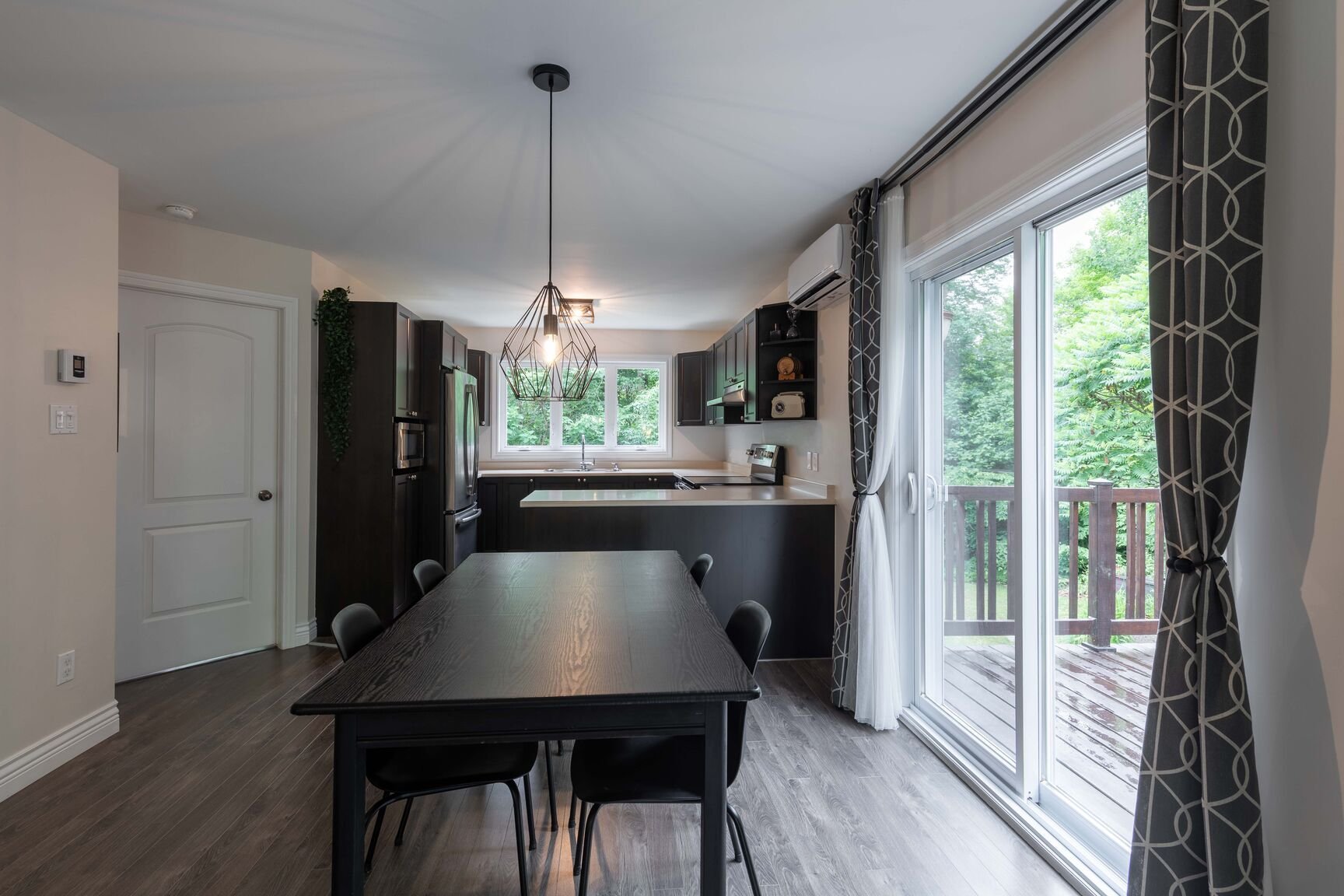 Une vraie perle ! Jumelé lumineux situé dans un rond-point paisible, offrant 2 chambres au rez-de-chaussée et 1 au sous-sol entièrement aménagé avec sortie extérieure. Comprend 2 salles de bain complètes, des balcons latéraux pour plus d'intimité et un grand terrain de 32 135 pi². Situé en face d'une garderie -- idéal pour les familles. À proximité des épiceries, parcs, restaurants, sentiers de randonnée et lacs. Un parfait équilibre entre confort, espace et qualité de vie pour familles ou amoureux de la nature.