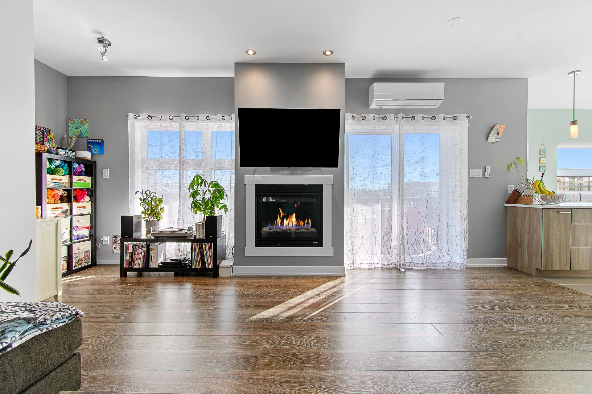 Superbe condo de 2 chambres situé à l'étage supérieur, unité de coin avec un grand balcon. Vous serez charmé par son concept à aire ouverte et ses nombreuses fenêtres orientées vers le sud, offrant une luminosité naturelle exceptionnelle. Les pièces, de bonnes dimensions, procurent un espace de vie à la fois confortable et convivial. Plusieurs améliorations ont été apportées depuis l'achat : nouveau comptoir de cuisine et de salle de bain, nouveau verre thermos de la porte d'entrée, nouvelle unité d'air climatisé, toiture refaite, ainsi que le calfeutrage complet de l'immeuble. Date de possession flexible. Coup de coeur assuré!