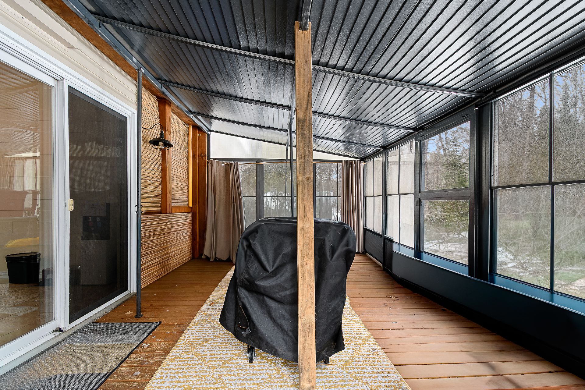 Inclusions Gazebo, remise, aspirateur central et accessoires, 2 télécommandes pour l'ouvre-porte de garage électrique, piscine et accessoires, stores, rideaux, tringles à rideaux, télé du loft et son meuble.