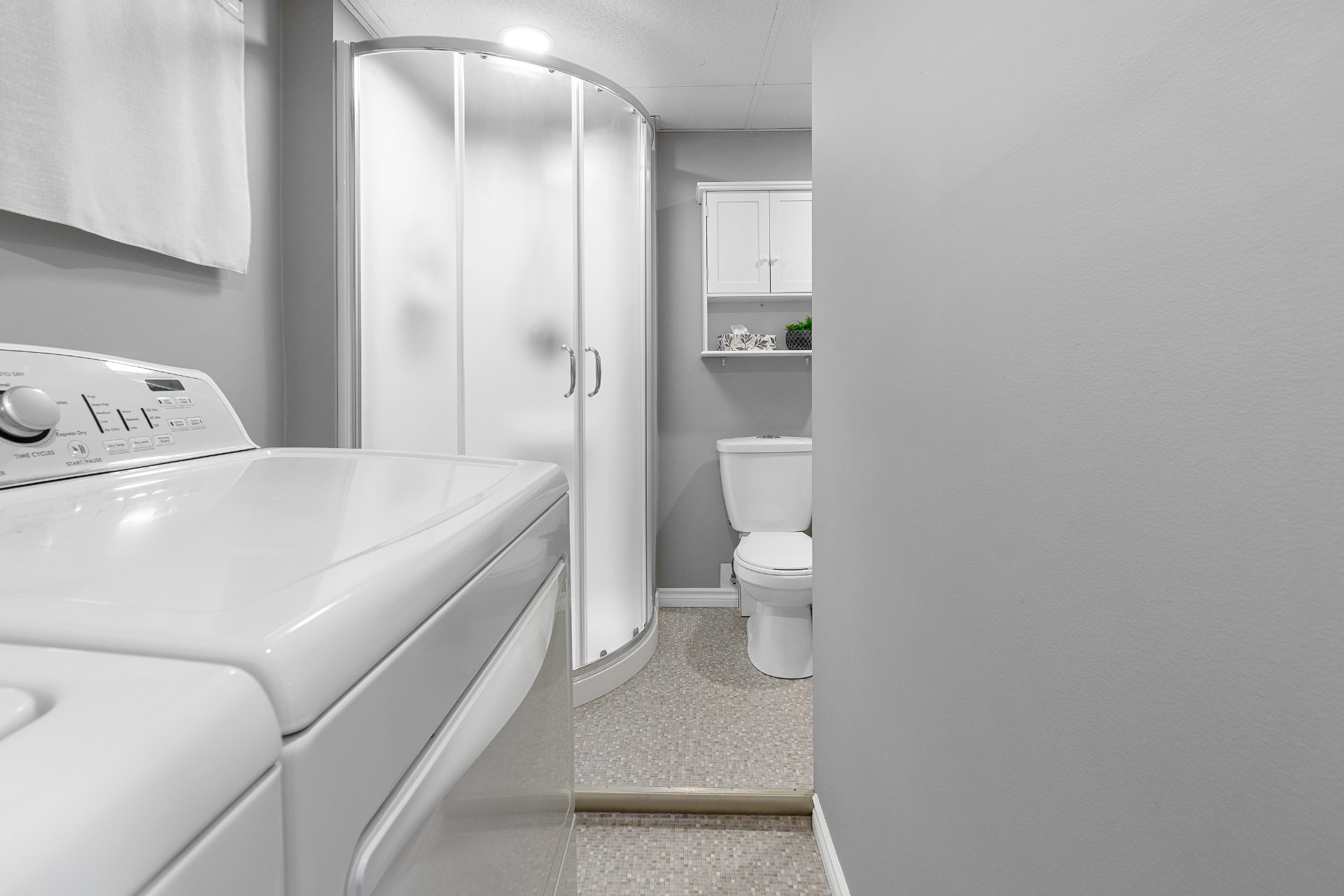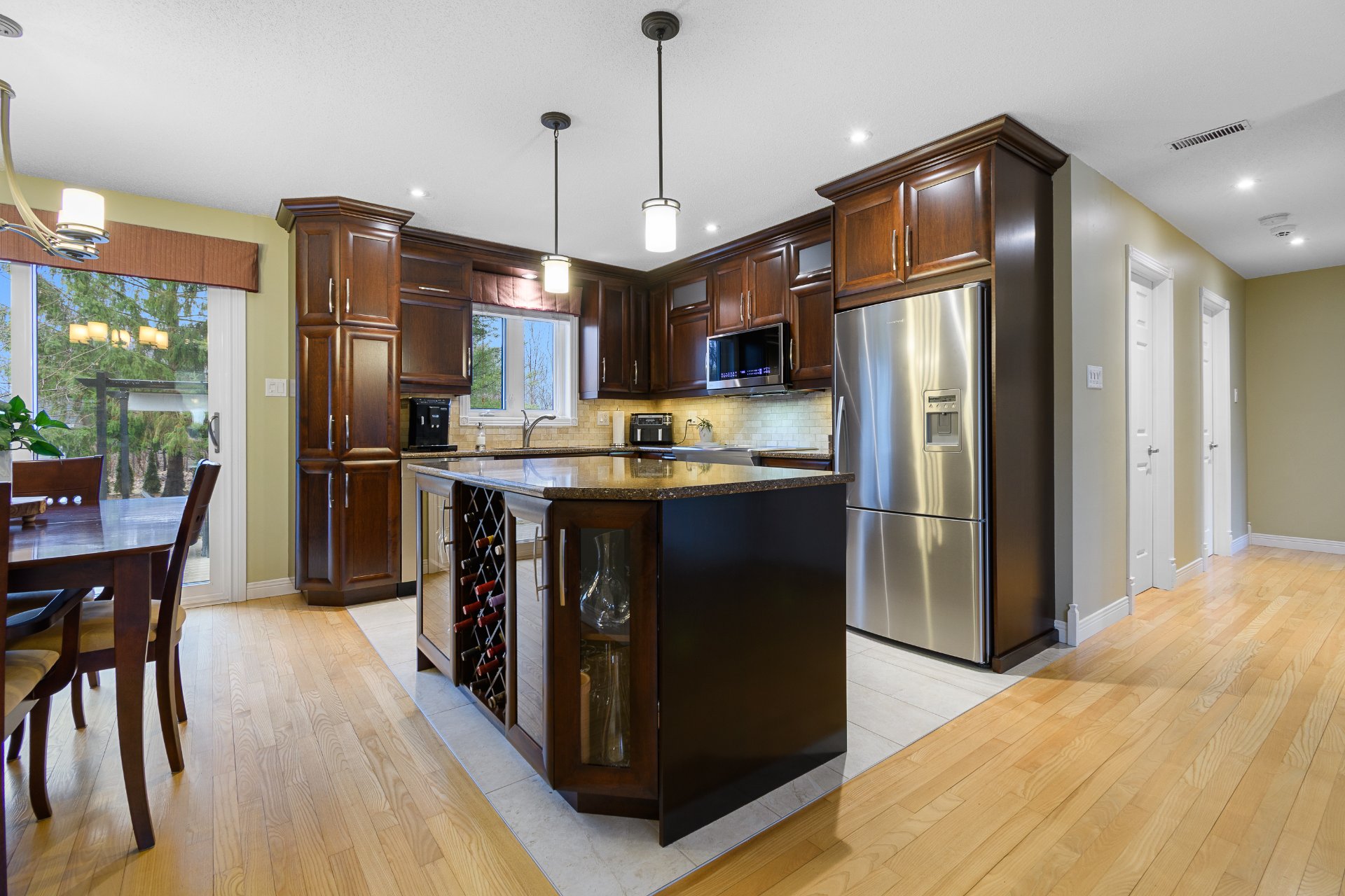 Inclusions Stores, pôles & rideaux. Réfrigérateur, cuisinière à induction, hotte-micro-onde, lave-vaisselle, laveuse, sécheuse. Réfrigérateur et congélateur du sous-sol. Aspirateur central & accessoires. Armoire de la salle de bain du rez-de-chaussée. Armo