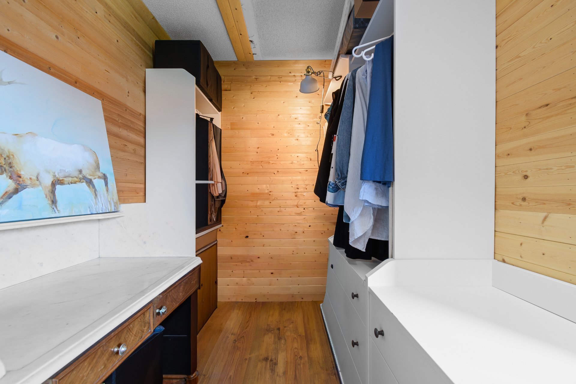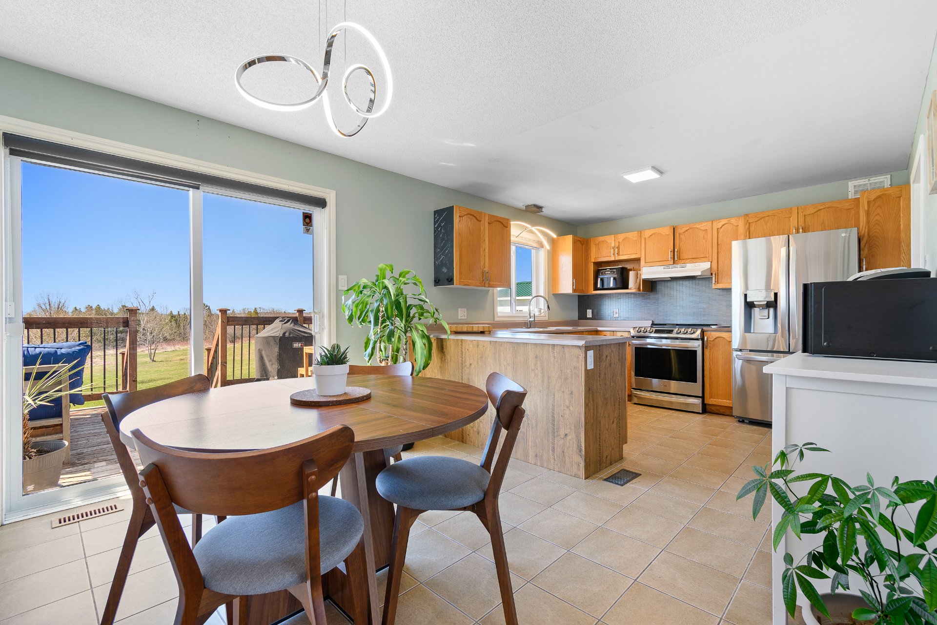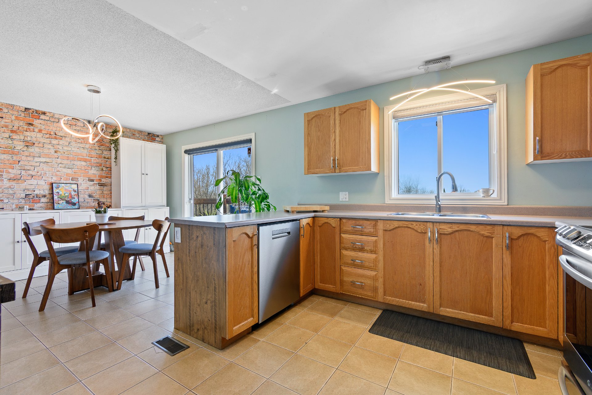 Inclusions Sont inclus dans la vente: le poêle à induction, frigidaire, lave-vaisselle, l'unité de rangement de la salle à manger, luminaires et stores, chauffe-eau 2019, unités de rangement et tablettes du walking.